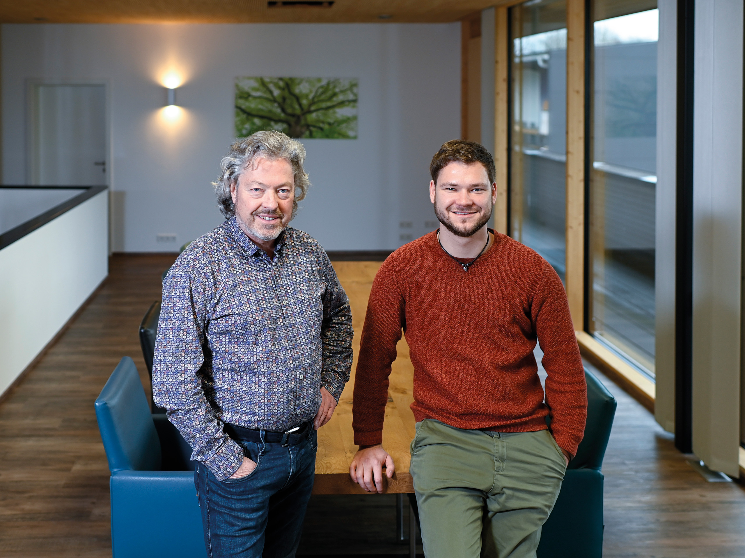 „Schon sofort nach meiner Meisterschule im Jahr 2016 hat mich mein Vater in alle Entscheidungen eingebunden. Selbst bei Entscheidungen, bei denen wir uns uneinig waren, hat er mir zu verstehen gegeben, dass am Ende meine Meinung zählt, da ich mich dafür entschieden habe, den Betrieb weiterzuführen“, erzählt Marvin. Bei HammerHAUS verlief die Übergabe an die nächste Generation besonders reibungslos. Seit diesem Jahr ist Marvin Hammer alleiniger Gesellschafter, die Geschäftsführung teilt er sich weiterhin mit seinem Vater Manfred Hammer.