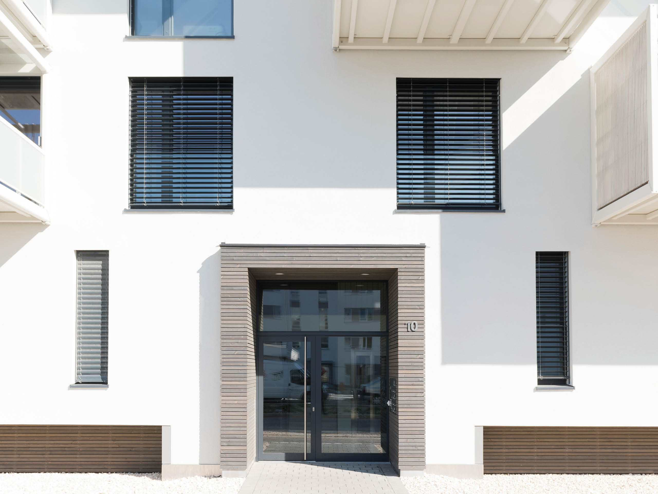 Bestechend ist die moderne Architektursprache, mit unter durch die vorgehängten Loggia-Boxen und die bodentiefen Fenster. Optisch vom Boden abgesetzte Fenster vermitteln den Gebäuden eine von den Planern gewünschte Leichtigkeit. Auch funktional ist an alles gedacht worden. Beispielsweise wurde zur Trittschallverhinderung auf Holz-Beton-Verbunddecken gesetzt. Ein vielfältiges Angebot mit zwei bis fünf Zimmern für Singles, Paare und Familien.
