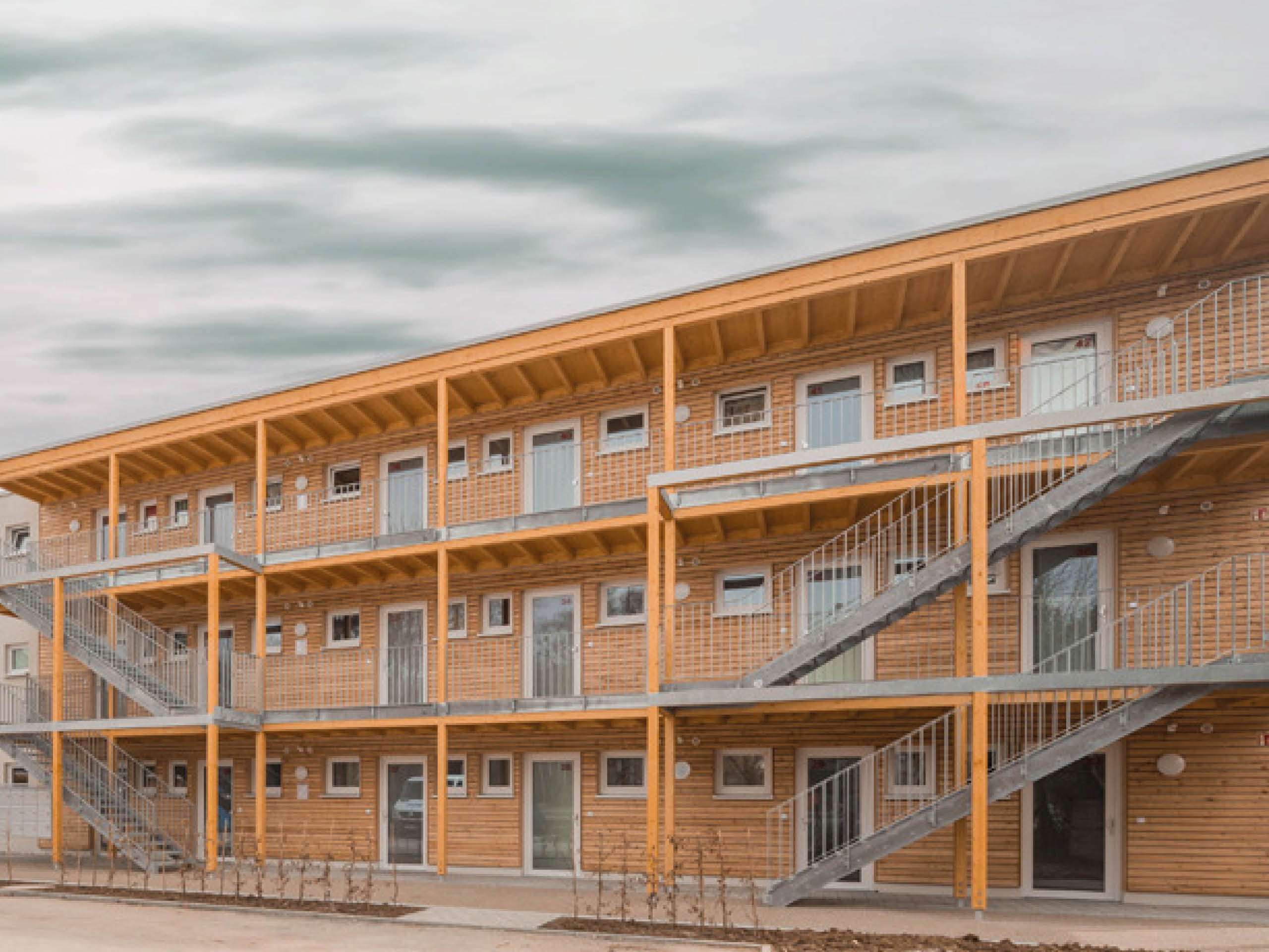 Beim Mehrfamilienhaus für soziale Zwecke und für die Anschlussunterbringung von Geflüchteten, punktete die Ausführung im Rahmen der Holzbauoffensive. Die Nachhaltigkeit im Allgemeinen war dem Bauherrn sehr wichtig, so wurde beispielsweise das Dach begrünt.